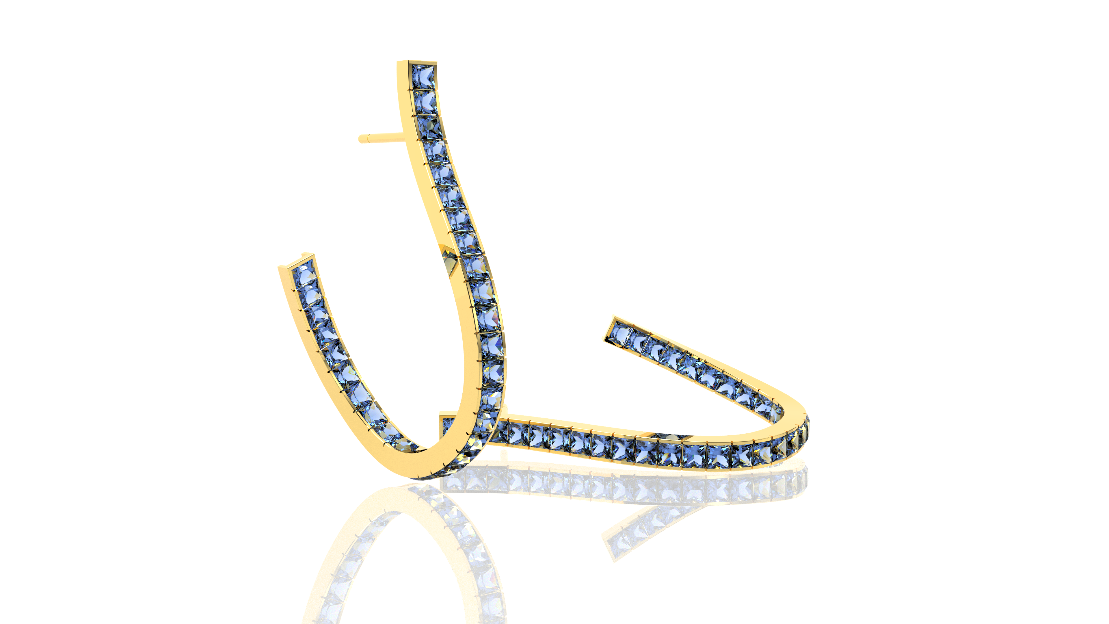 Σκουλαρίκια σε χρυσό 18Κ με ζαφείρια κοπής princess.